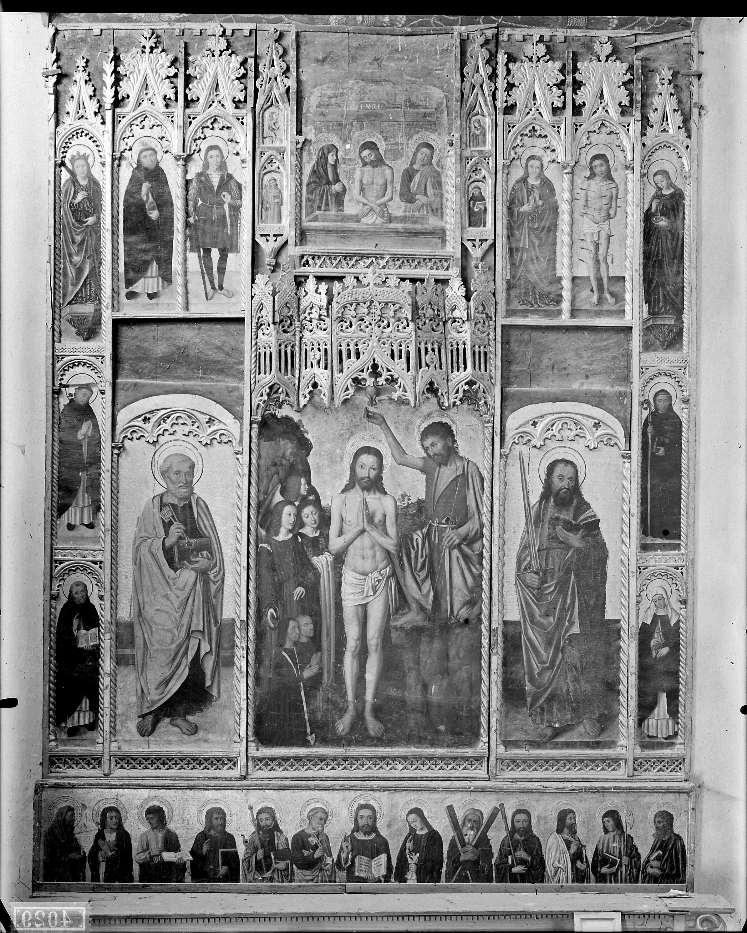 Taggia - Chiesa di S. Domenico, polittico col Battesimo di Gesù con donatori e santi
