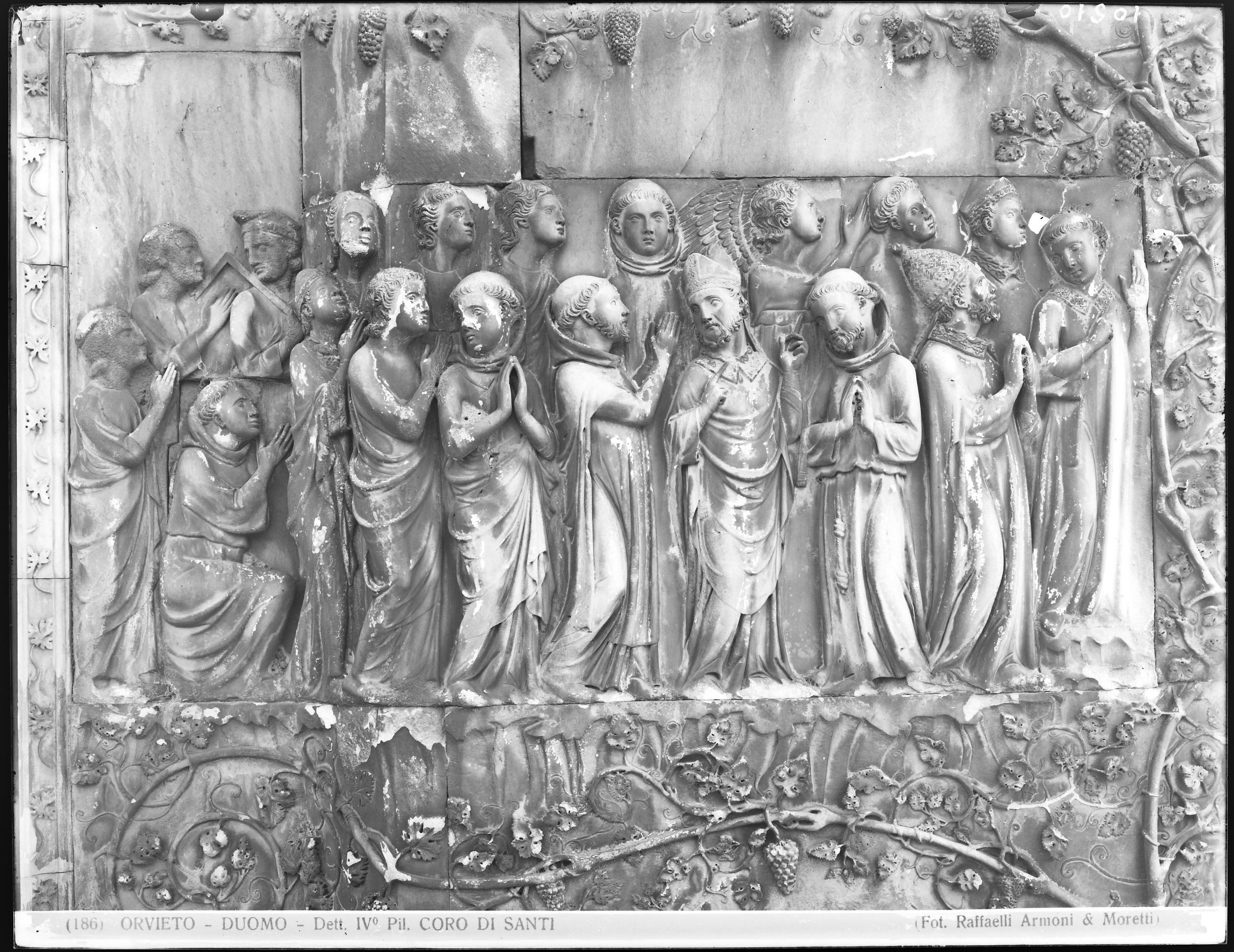 Orvieto - Cattedrale di S. Maria Assunta, facciata, quarto pilastro, Coro di Santi, S. Agostino, S. Domenico e S. Francesco d'Assisi