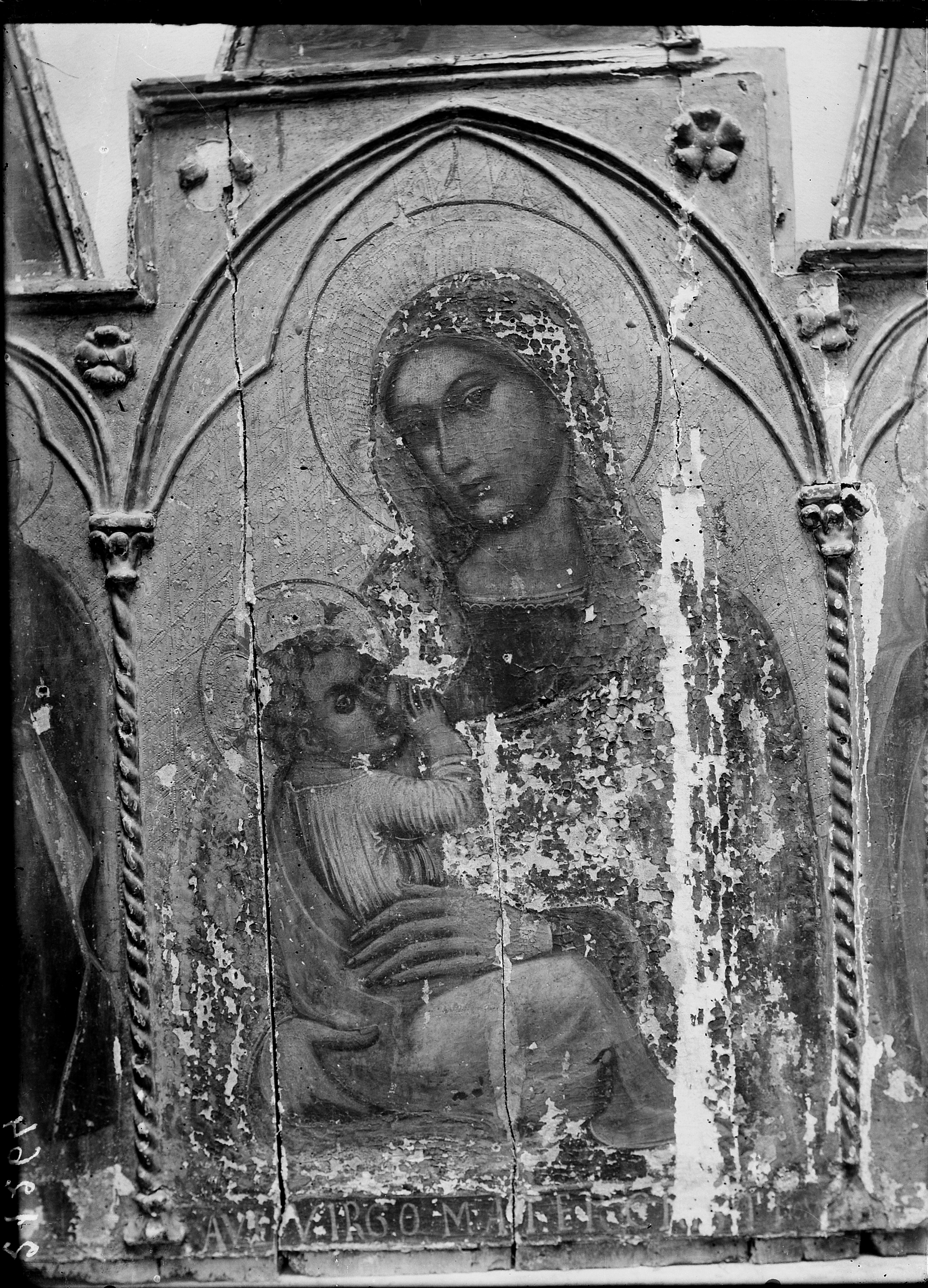 Lavagnola - Chiesa parrocchiale di S. Dalmazio, polittico, Madonna con Bambino e Santi prima del restauro del 1922, particolare della Madonna con Bambino