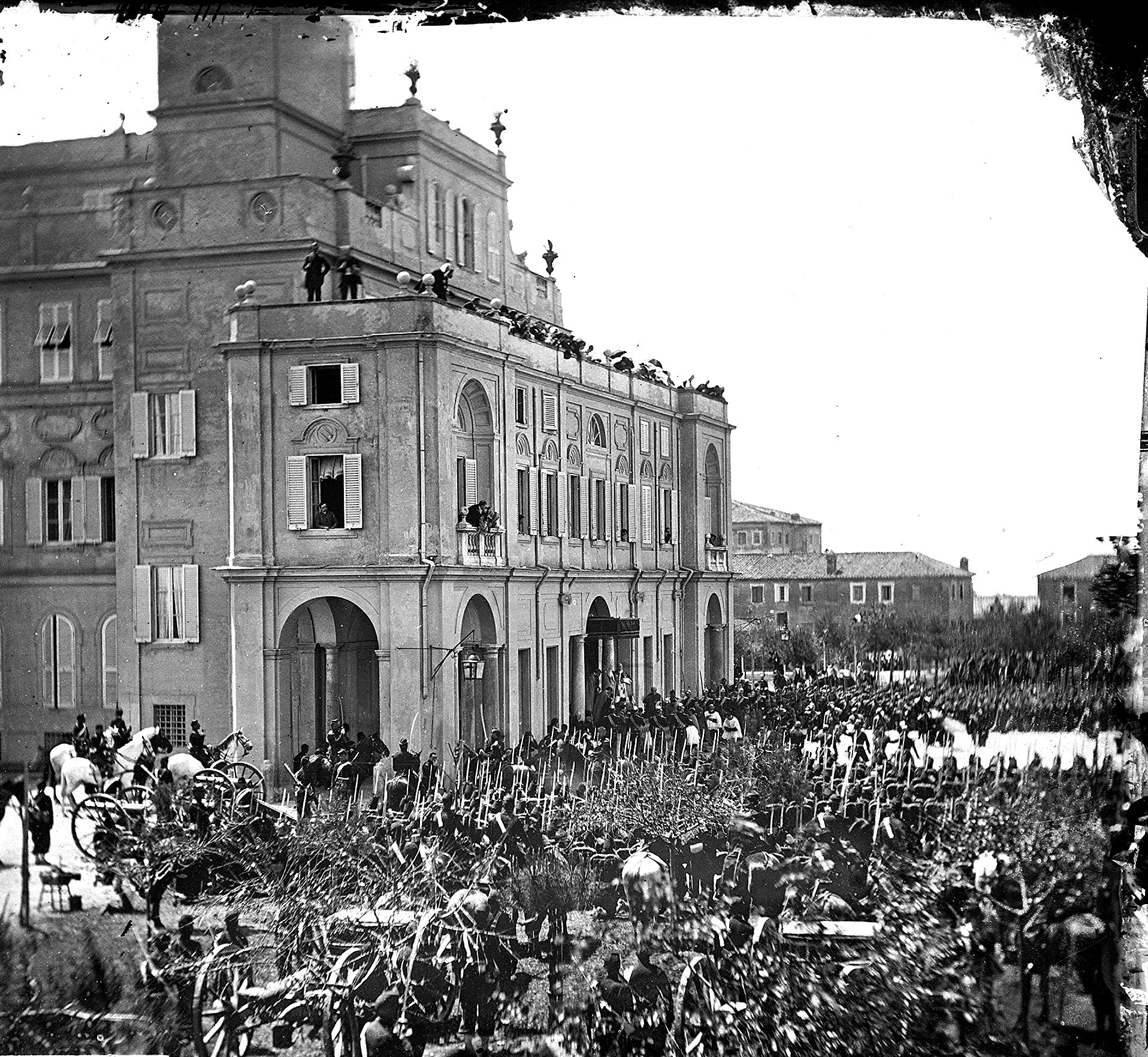 Anzio - Truppe pontificie ricevono le nuove bandiere dal Papa Pio IX: il Papa benedice