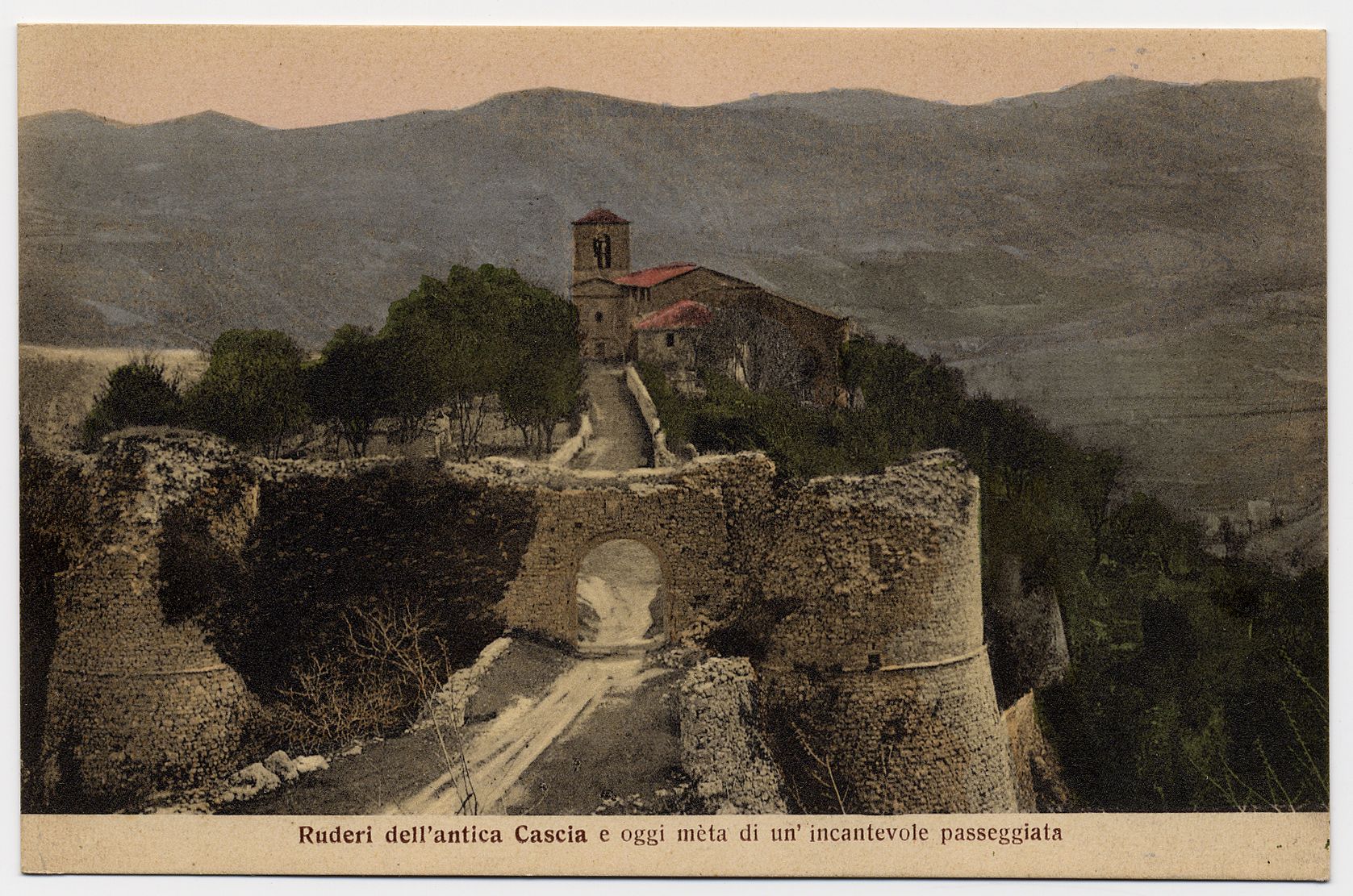 Cascia - Resti della Rocca voluta da Paolo II (1464-1671) e distrutta nel 1517, sullo sfondo la chiesa di Sant'Agostino