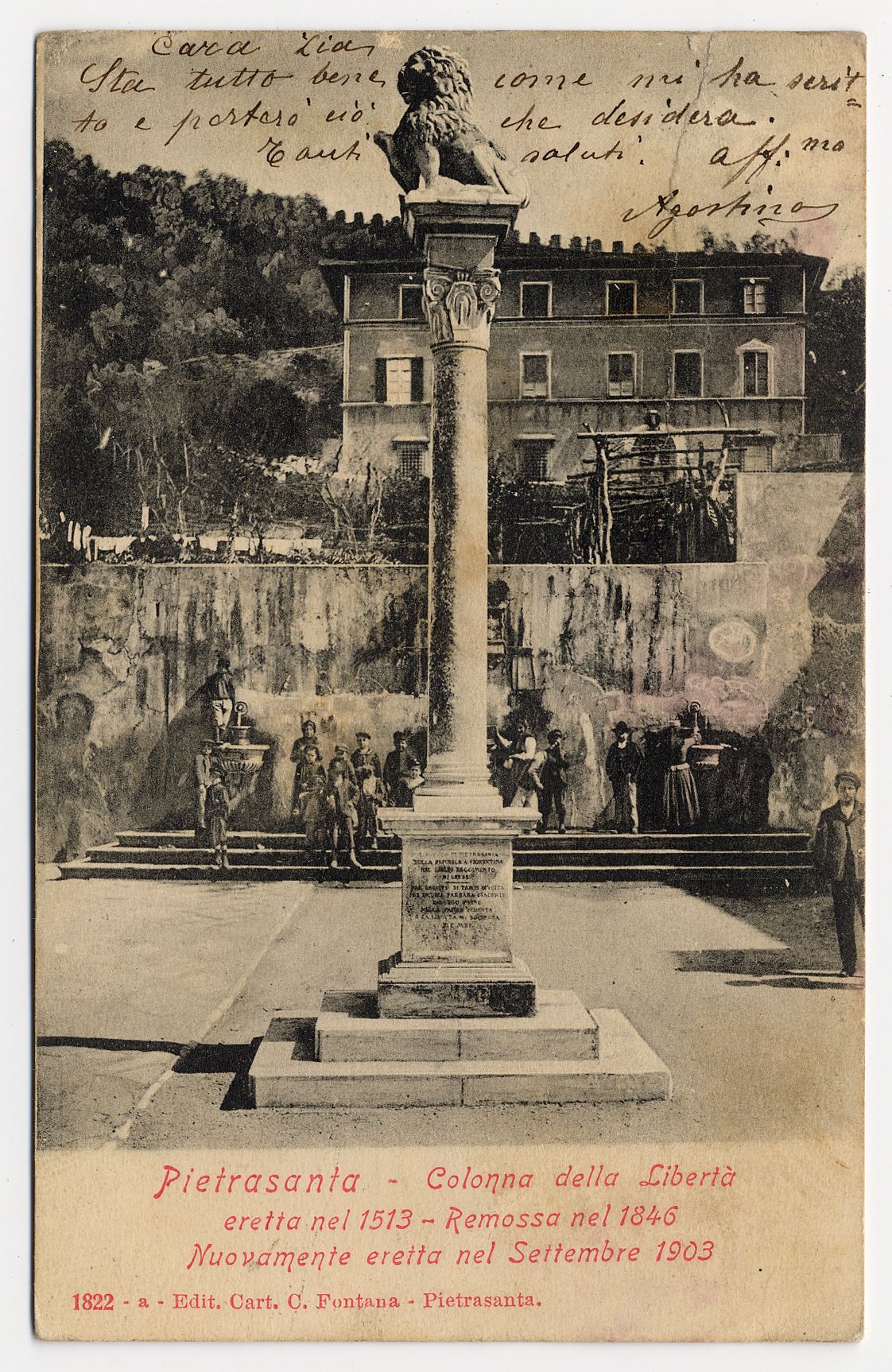 PIETRASANTA - COLONNA DELLA LIBERTA' ERETTA NEL 1513 - REMOSSA NEL 1846 - NUOVAMENTE ERETTA NEL SETTEMBRE 1903