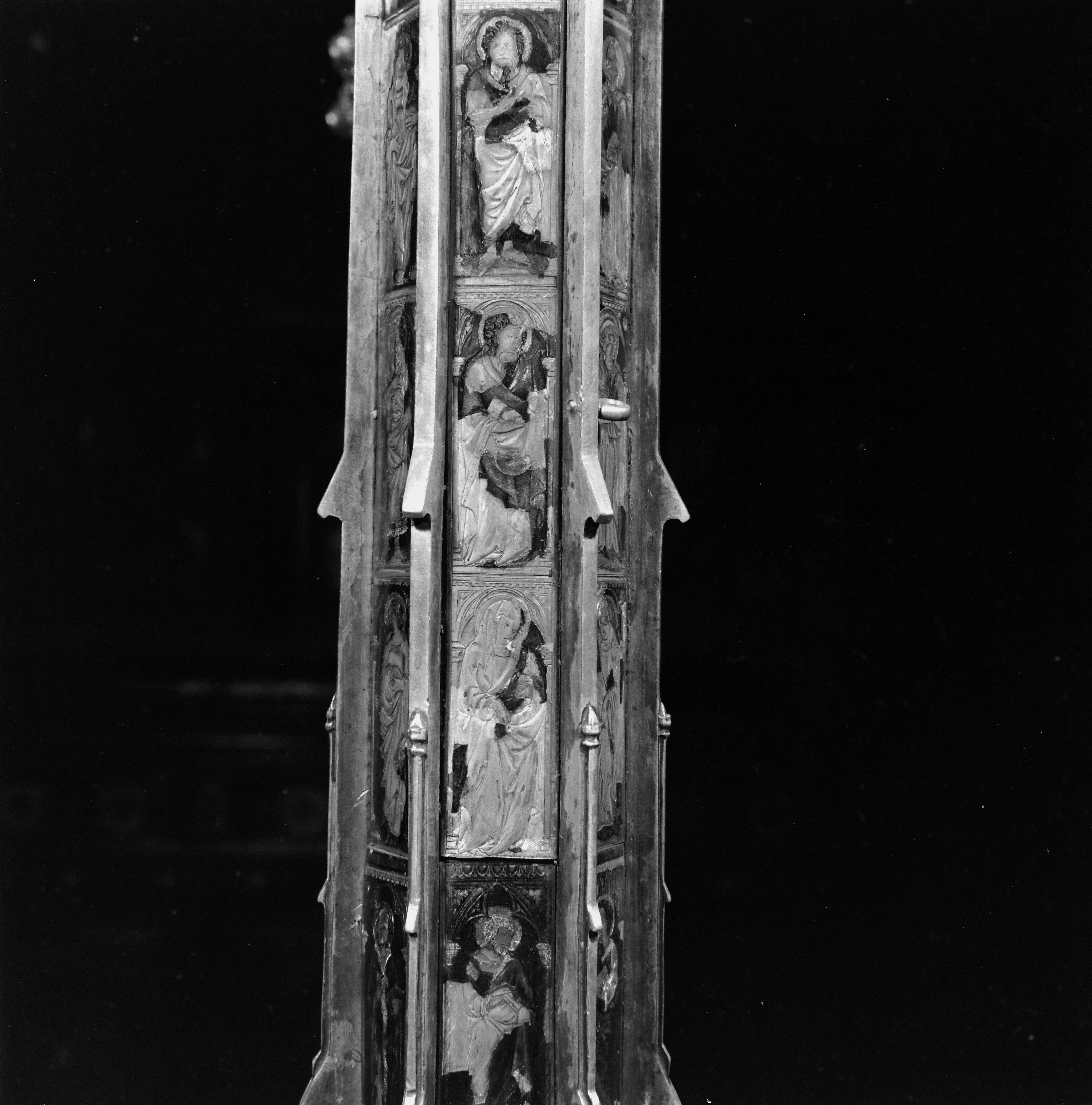 Orvieto - Cattedrale di S. Maria Assunta, Cappella del Corporale, Reliquiario del Corporale di Bolsena, particolare del pilone con figure di Santi.